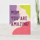 Diga a sua mãe que ela é uma mulher incrível com texto ousado sobre um fundo moderno de bolhas coloridas em rosa-coral, lavanda roxo e amarelo-cítron brilhante sobre um fundo texturizado de rosa-rosa-claro. Todo o texto é editável para uma placa de dia de as mães totalmente personalizada.