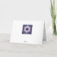 Uma menorah Chanukkah azul, com um tema de leão, com velas acesas sobrepostas a um fundo estrelado. Adicione seu próprio texto.
