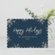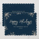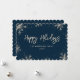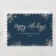 Cartão Azul Feliz de Férias com flocos de neve espumantes. Personalize facilmente este cartão de férias minimalista, mas elegante, com o seu texto.