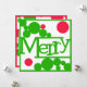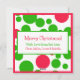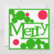 Feliz Natal em estilo moderno retrô. Bolhas ou pontos vermelhos e verdes brilhantes rodeiam a palavra "Merry" feita à mão. O verso apresenta mais pontos e um painel de mensagem que você pode personalizar com seu cumprimento: Feliz Natal, Boas Festas ou qualquer outra coisa que você deseje. Opções adicionais de personalização incluem espaço para o nome da família ou uma mensagem breve e nomes individuais. Uma versão moderna de um visual vintage. Brilhante e ousado, mas também limpo e contemporâneo. Este é um cartão divertido e atraente para qualquer cumprimento de Natal.