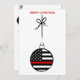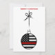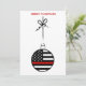 Envie saudações de Feliz Natal a amigos e familiares com este Cartão Único Thin Red Fireglass de Natal - Ornamento de Férias em um design americano de bandeira nos EUA, com cores de bandeira de bombeiro, design branco e preto moderno. Personalize com o nome da família e os nomes dos membros da família ou apague para escrever manualmente. Este cartão de Natal de bombeiro é perfeito para famílias de bombeiros ou cartões de natal de bombeiros. COPYRIGHT © 2020 Judy Burrows, Black Dog Art - Todos Os Direitos Reservados. Cartão de Feriado do Bombeiro Bombeador de Natal da Linha Vermelha fina