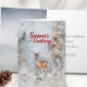 Compartilhe a magia da estação com esta design de Natal com renas aquáticas, apresentando um veado gracioso numa floresta nevada sob neve suave. "Saudações da Época" aparece num roteiro festivo vermelho e verde. O texto totalmente editável permite personalizar sua saudação, nome e ano. Perfeito para cartões de Natal de renas, designs de férias de aquarela e artigos de papelaria sazonais de arte.