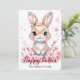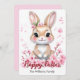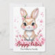 Um cartão de Páscoa com um belo coelhinho cercado por flores cor-de-rosa. Todos os textos são editáveis para que você possa criar seus desejos pessoais de Páscoa. [e51b57ef1adc]