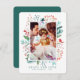 O design é composto por uma aquarela de botânicos de folhagem de Natal. Adicione uma foto personalizada e um nome de família e ano.
