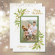 Folhas verdes e douradas e pontos enquadram sua foto favorita nesses Cartões de foto de Natal. Seus nomes e saudações em letras quentes na frente. ALTERE o ditado, altere as fontes, as cores da fonte, a cor da borda verde e até a cor na parte traseira. **Adicione mais fotos ou mais detalhes na parte traseira com o link PERSONALIZAR. Selecione Matte para o papel mais pesado e High Definition para obter a melhor qualidade de foto.