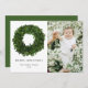 Feliz Natal | Envie seus desejos de feriado para amigos e familiares com este cartão de Natal personalizável. Este cartão fotográfico de Natal apresenta uma coroa de madeira de boxe pintada à mão. Personalize adicionando seus detalhes. Este cartão verde está disponível em outras cores e estoque de papelão. Itens correspondentes estão disponíveis.
