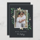 O cartão com fotos elegante e festivo enquadra a sua imagem vertical ou orientada para retratos favorita com uma sutil borda decodificada e folhagem branca e verde de feriado nos cantos. "Feliz Natal" ou sua escolha de cumprimentos aparece abaixo, junto com seu nome de família. Adicione três fotos adicionais ao verso, juntamente com uma mensagem pessoal.