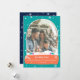Que ilustração divertida do globo de neve fotográfico em uma turquesa brilhante editável, laranja e azul marinho, adicione sua foto familiar no globo da neve excessivamente com um padrão fofo de neve e flocos de neve.