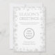 Mantenha seus cumprimentos comerciais elegantes com um cartão branco adornado com flocos de neve prateados e brilhos. Totalmente personalizável para logotipos e mensagens, perfeito para pedidos profissionais em massa e negócios de boutique.