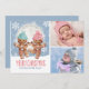 O Cartões de foto de Natal de Natal Whimsical apresenta biscoitos de gengibre bonitos dançando com alegria sob a lua e estrelas, com saudações de "Joy to the World" e "Feliz Natal". Personalize-o com o(s) seu(s) nome(s), fotos da sua autoria e uma saudação (através da lua). Trabalho de arte por ações da KL