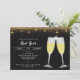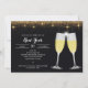 Dois copos de champanhe brincaram em comemoração neste impressionante convite de festas de Ano Novo. Chás de confete dourados falsos contra um fundo preto rico no topo e no fundo deste convite. O plano de fundo se repete no reverso junto com qualquer texto que você deseja adicionar. Além de uma celebração de Ano novo, este convite pode ser personalizado para uma festa de feriado, aniversário, casamento de Ano Novo ou festa de coquetel de feriado. Disponível com produtos correspondentes.