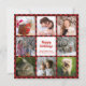 Envie seus Cartões de natal este ano com este moderno cartão com fotos de feriado com as palavras 'Felizes Feriados', seu nome de família e oito de suas fotos favoritas. Um padrão de verificação de búfalos enfeita a frente do cartão. Dica: Você pode alterar as cores de fundo vermelhas para combinar as fotos.