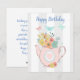 Cartão De Festividades Bule rosa com flores e borboletas Aniversário