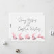 Bonitos cor-de-rosa no fundo, com uma citação que diz "Beijos Coelhinhos e Desejos Páscoas"