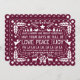Cartão De Festividades Burgundy Love Peace Joy papel picado Natal