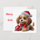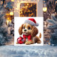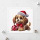 Envie um toque de magia festiva com este doce cachorrinho dourado em um chapéu e laço de Papai Noel, acompanhado por um enfeite vermelho brilhante. Ideal para espalhar calor e alegria nas festas de fim de ano