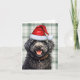 Um cachorro Barbet giro em uma xadrez verde e branca para as férias, em uma diversão menor que a média e cartões de natal dobrado.