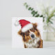 Muito fofo e único também! Um cartões de natal quadrado com duas preferencialmentes laterais do que uma dobra, engenhoso! Pet amantes vão adorar esta pintura de um cão pastor australiano em um chapéu de Papai Noel com seu texto personalizado no verso. Mantenha a mensagem no cartão ou troque-a para se adequar ao coração do seu cão.