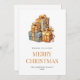 Watercolor Cartão de Natal Merry com caixas de presentes de Natal. Personalize facilmente este elegante cartão de Natal com o seu nome de família e o ano.