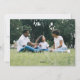 Deseje aos amigos e à família um Feliz ano novo com um cartão de feriado personalizado com uma foto vertical próxima a um calendário de 2022 na frente e uma foto horizontal na parte traseira. Substitua as fotos de exemplo, o nome e a saudação na barra lateral. O texto personalizado está em uma fonte legal de script manuscrito branco. Abaixo está um calendário branco para 2022 sobre um fundo azul. Você pode remover a atribuição Zazzle e designer no verso da barra lateral. Placa e design de calendário © Claire E. Skinner. Todos os direitos reservados.