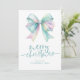 Arco de Coquete Iridescente 2026 Calendário Feliz Natal Feliz. Disponível digitalmente e impresso. Feliz Natal está em um roteiro de na moda e personalize seu nome embaixo. Um calendário útil para 2026 está no verso.