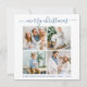 Modern Trendy Calliographic 4 Photo Family Collage Merry Christmas Square Holiday Card - Dusty Blue