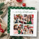 Modern Trendy Calliographic 4 Photo Family Collage Merry Christmas Square Holiday Card - Verde com flocos de neve