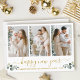 A Placa Feriada de Foto do Feliz ano novo 3 do Script de Caligrafia Moderna inclui Folhas Eucalyptus de Aquarela. Texto Dourado.