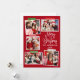 A Caligrafia Moderna Roteiro Feliz Natal 5 Colagem de Fotos com Cartão de Férias de Fita de Artesanato. Fundo Vermelho.