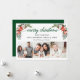 Script de caligrafia moderna. O Elegante Winter Floral 3 Photo Merry Christmas Card inclui belas poinsettias vermelhas com aquarela, verde botânico, folhagem de inverno, bagas ocas, rosas brancas, algodão, pínus e bagas azuis. Verdes.