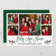A Placa de Feliz ano novo do Roteiro de Caligrafia Moderna com 5 Fotografias da Família Collage Feliz Ano Nuevo inclui Watercolor Christmas Holly Berries - Script Verde