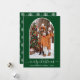 Modern Trendy Calliographic Script Felry Christmas Arch Holiday Card - Forest Green Back com flocos de neve