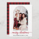 Placa de Férias de Férias da Família Feliz Natal, Script de Caligrafia Moderna. Xadrez de Buffalo Vermelho.