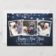 Placa de Feliz ano novo da Família Fotográfica do Script 3 de Diversão Moderna com Luzes de Corda - Impressão de Madeira Azul Rústica