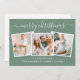 Modern Trendy Calliographic 3 Photo Family Collage Cartão de Natal Feliz - Verde Sage