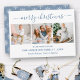 Modern Trendy Calliographic 3 Photo Family Collage Cartão de Natal Feliz - Azul Dusty com Flocos de Neve