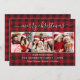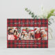 Modern Trendy Calliographic 3 Photo Family Collage Cartão de Natal Feliz - Xadrez de Buffalo Vermelho