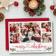 Placa de Feriado de Foto Feliz Natal 5 - Script de Coração de Caligrafia Moderna inclui Berries Red Holly - Script Vermelho