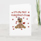 Um adorável design do primeiro Dia de os namorados sobre T-shirts, fatos-chave, ímanes, cartões, adesivos, bolsas e mais com um ursinho de pelúcia com um chapéu de hélice e corações e textos vermelhos.