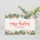 Cartões de cartões de natal para empresas apresentam lindos bagos vermelhos, folhas, pinos cones e canas doces com Feliz Natal e o nome de sua empresa na frente. Seu obrigado personalizado que você envia a mensagem está impresso no verso. Mais designs na nossa coleção.