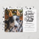 Envie este cartão de férias fofo e divertido para sua família e amigos para espalhar alegria de Natal. Este cartão apresenta tendências e tipografia moderna que diz "Papais noeis queridos que eu realmente tentei" em fontes pretas manuscritas. Adicione facilmente a foto do seu cachorro para personalizar. A parte traseira da placa apresenta um padrão bonito com estampas de pata e pequenos corações em tons pretos e cinzas.