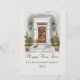 Este elegante cartão de Ano Novo apresenta um cachorro bonito sentado em frente a uma porta elegante, cercado por topiário festivo e folhagem e um lindo passarinho Red Cardinal. A frente lê Feliz ano novo. Você pode personalizar a saudação, adicionar seu nome de família e o ano (ou deixar vazio se preferir). A parte de trás foi deixada vazio para qualquer mensagem pessoal que você queira escrever.