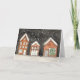 Casas de pão-de-espécie na noite, céu nevado da pintura da aguarela.