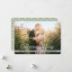 Comemore a temporada compartilhando sua foto favorita de casamento com aqueles que você ama. Esta placa de feriado personalizada foi projetada para colocar sua foto horizontal na parte frontal. As palavras 'Casado & Feliz' são impressas em branco acima de uma faixa branca esmerada na qual você pode digitar seus nomes ou texto personalizado. A parte superior esquerda tem um banner de fita branca pálida que pode ser personalizado com o ano - basta usar os modelos fáceis fornecidos para personalizar o texto. O verso é impresso com um padrão de anel de encravamento em branco e verde de sábado macio. Moderno, limpo e contemporâneo!