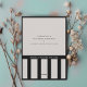 Espessura de 18 pt / Gramatura de 120 lb. Branco suave, textura delicada.