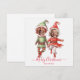 Cartão de Natal com casal de elfos dançando e espaço para 2 fotos. Personalize com fotos e nomes.
