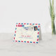 Personalize este Cartões de agradecimentos de casamento do correio aéreo para todos os seus convidados que viajaram para o seu casamento. Perfeito para o casamento de destino. Adicione uma foto na frente que será seu carimbo junto com a data do Recem casados. Cor do creme na frente e dentro. Os locais do cartão são NEW YORK USA e Bermudas com uma linha pontilhada com dois corações conectando-os. Eu o defini como seus novos nomes casados na frente, mas você pode mudar a redação para o que você mais gosta. Adicione uma imagem de cheio na dentro para mostrar sua foto favorita de casamento! Personalize sua própria mensagem ou exclua-a para deixar o vazio. Para obter informações sobre alterações de design personalizadas pelo designer independente, envie um email para paula@labellarue.com ANTES de personalizar ou fazer um pedido.