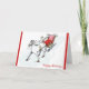 Este design é um cavalo branco puxando uma carruagem vermelha através da neve branca. Estrelas douradas são colocadas ao redor da carruagem. Uma borda vermelha foi adicionada. O interior tem uma bela mensagem. Este cartão pode ser personalizado com suas próprias informações. Este cartão vem com um envelope e selo correspondentes.