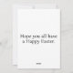 Este cartão de férias contém vários ovos coloridos de Páscoa descansados em uma cesta.