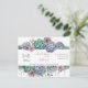 Este chá de panela de captura visual apresenta suculentos de aquarela com eucalipto em tons de verde, rosa e violeta. Visualmente atordoante com um sentimento único orgânico e, no entanto, romântico. Os botânicos bem sucedidos estão na tendência dos chás de panela. Este convite é personalizado com detalhes do chá na frente e o registro da noiva no verso.